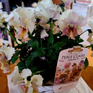 1️⃣2️⃣パンジーとビオラ 新しく仲間入りした、小輪パンジーの『花日和』シリーズ『ペルクレア』です。 フリフリ可愛いですね🎵