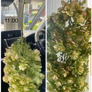 柏葉アジサイのドライ 今回初めて車内に吊るして作ってみました。 11時に吊るして7時間後 キレイな色のままカラカラに乾燥していました❣️ この方法は簡単キレイな仕上がりで超おすすめですよ😉