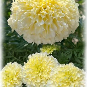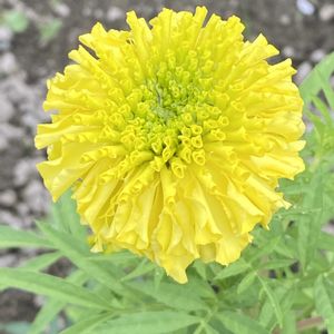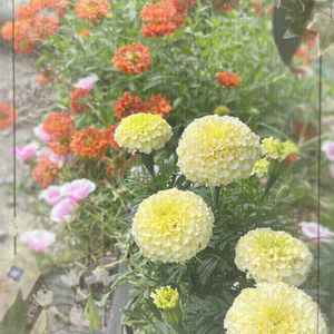今日のお花『マリーゴールド』 こぼれ種のアフリカンマリーゴールドです⚪️🟡⚪️🟡 固い土の所に出てきた割には良く咲いています。根っこが思いきり張れないからか?背も高くならず、私にとってはちょうど良い高さです👍 毎年こぼれ種出ないかな〜🌱🌱🌱