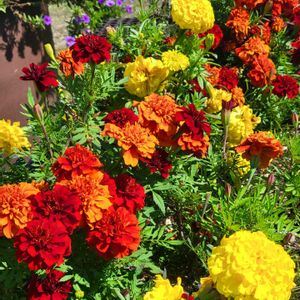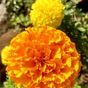 マリーゴールド 種からも育てたけど、半分はこぼれ種からです🤗 思いもよらぬ所からも生えてきたりして… 10mは離れた所でも… 種取っておく必要無かったかな😅 ポンポンと咲いてくれるので、カミさんの切り花にも重宝してます✌️😊