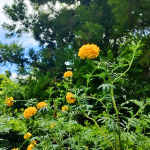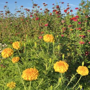 アフリカンマリーゴールド🌼 春に咲いた花をばら撒いておいたら また咲いてくれました🤗 2度も咲いてくれて凄い!