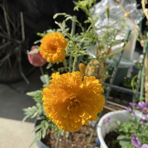 アフリカンマリーゴールド🏵️ 倒れまくりですがよく咲いてくれてます