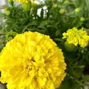 《アフリカンマリーゴールド🌼》 麦わらの帽子の君が 揺れたマリーゴールドに似ている あれは空がまだ青い夏のこと 懐かしいと笑えたあの日の恋💓 あいみょんが好き❤️😊