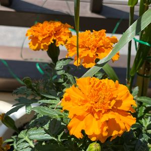ピーマン・ナスと一緒に育てているアフリカンマリーゴールド🌼*・ コンパニオンプランツとして役に立っているか分かりませんが、元気に育っています😆