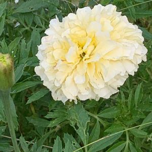 こぼれ種のマリーゴールドが毎年畑のあちこちで咲きますが、同じ種類ではつまらないので色や形の変わっているものを種から育ててにぎやかです😍 クリーム色はお気に入り🤗
