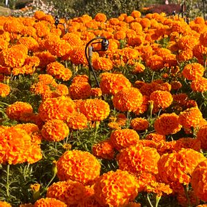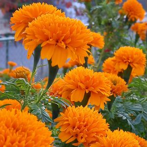《デンパークへようこそ〜ポンポン咲き》 これはアフリカンマリーゴールドと言います😊 花がボール咲き・大輪、花の色は橙・黄・白🌼🌸 草丈は30~100cm😊🌼