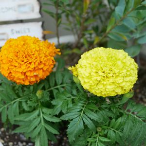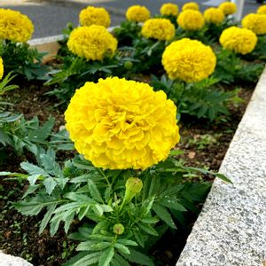 アフリカン マリーゴールド🌼 丸くて大きくて可愛いのです😍 午前中サフィニアをなんとか鉢植えしたけど風が強くて断念😓マリーゴールドはまだビニールポットから出さずに仮置き💧 でもこのままでも充分可愛いわ❤️