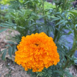 種まきしたアフリカン・マリーゴールド…今年は遅咲きでしたがようやく開花✨やっぱり、デッカイです! …いつか、フェンスを作りたいと思いつつ、ずっと先延ばしにしていて…それまで生垣代わりに植えてます。