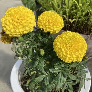 アフリカンマリーゴールド ホワイトゴールド 種取りして毎年更新してます 種まきが今年はすこぶる調子悪いです😢 この種類も一重やボサボサがほとんど まともな株が半分ほどでした そろそろ種を買い替えようかな。。。