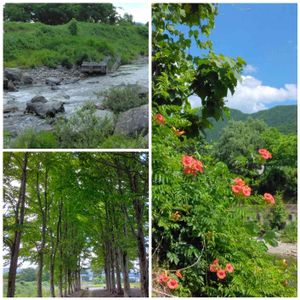 おはようございます😃 少年時代の歌思い浮かびました 夏が過ぎ風あざみ 誰のあこがれにさまよう 青空に残された 私の心は夏模様🎶 ちょっと早すぎたかな? 斜面にノウゼンカズラが映えてます✨ 川遊びしたくなりました~🎶