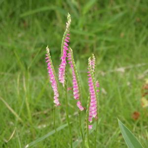 6/29 (土) 🌥 💞💠🌿捩花🌿💠💞ネジバナ 別名💠綟摺💠モジズリ ♣ねじれた花序が和名の由来である。「ネジレバナ」、「ネジリバナ」、「ねじり草(そう)」と呼ばれる事もある。学名Spiranthes(スピランセス)は、ギリシャ語の「speira(螺旋(らせん))+anthos(花)」に由来する。右巻きと左巻きの両方があり、中には花序がねじれない個体や、途中でねじれ方が変わる個体もある。 ごく稀に真っ白い花をつける個体(シロネジバナ、シロバナモジズリ)が見られる♣