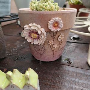 お花鉢coyaさんのリメイク鉢。 今まで、多肉代が惜しくて、リメ鉢を見送ってきたけど、coyaさんのお花鉢に一目惚れして、この秋3つも買ってしまった…。ふんわりとした、優しい雰囲気に欲…収まらず。 斑入りパープルヘイズのアイシクルミントをちょこんと、植えてみた。増えるといいな。