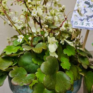西洋ダイモンジソウ 去年の姿 夏に枯れそうになって、今も枯れそうです。それでも、一応咲きました。何とか生きていてほしいです。
