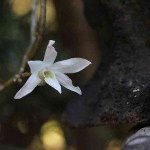 セッコクの花 石に埋め込み育ててます。 地面につき、開花気づかず一つは枯れてました。 場所移動して撮影