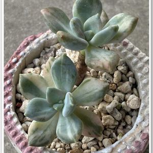 おはようございます☕𓈒𓏸︎︎︎︎ 1枚目 雪だるま もともと小さな子(右下)が、夏のダメージで左上のようになっちゃいました( •᷄⌓•᷅ )💨 2枚目 パキフィトイデス錦 実際はもう少しピンク色が出ています✿·͜·ᰔ💖 3枚目 さくらベゴニア 左下の姿だったのに葉が落ちて棒だけになっちゃってましたඉ́ ̫ ඉ̀ 棒の写真はありません💦 何が原因だったのかな...🤔 復活してくれて良かった(⑉> ᴗ <⑉)💗