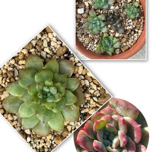 1枚目 朧月❣️ 落ちた葉っぱからも子株さんがこんにちは😊 2枚目 グリーンアイス🥀 枯れたと思いショックでそのまま放置していたら、根元から新芽🌱が出ていました👍 枯れ枝をカットして植え替え🪴 また可愛い🌸を期待してるね😄
