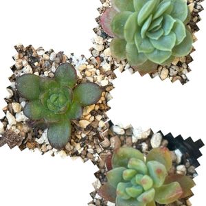 備忘録④❣️ 葉挿しから育った子や復活苗です🌱 備忘録はもう少し続きます😅 左 思い出露 右上 スノーチーズケーキ 右下 ピュアラブ