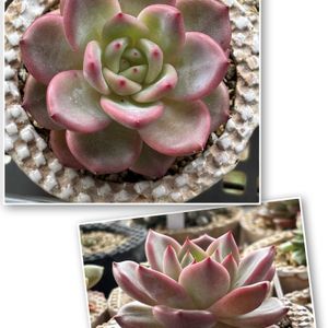 1枚目 チュコライン❣️ 約2ヶ月前よりエッジのお色が濃くなって可愛くなっています𓂃𓈒𓏸︎︎︎❤️ 2枚目 クラッスラ パステル❣️ この子も1週間ちょっとで可愛さが増しています🧏🏻♀️💞