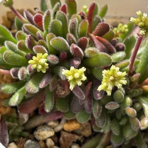 多肉さんのツボミが開花がしてきました🥰 1枚目 姫秀麗 2枚目 マッコス この子ジュレました😭 3枚目 ロメオ×? この時期にどうして( ・᷄д・᷅ )???