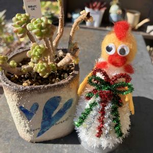 🏷にいさんの日 チクチク女王のぼんぼんちゃんから 🎄チキンがキターーー(♡∀♡)ーーー!!! ちょ🤣🤣🤣💕可愛すぎる(笑) 盆栽チックになったお気に入りのシャングリラと(笑) 2枚目✨ Mikiちゃんからの刺客(笑) 手足が蛇腹みたいになって、伸び縮みするチキン🤣 カシミアバイオレットに絡ませてみた(笑) 3枚目✨ KOHちゃんからの誕プレに頂いた クリスマスローズをでかい素焼き鉢に植えました💕 見張り番は、これまたMikiちゃんからのヘルメットアヒル🤣🤣🤣