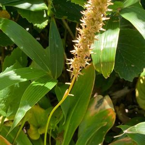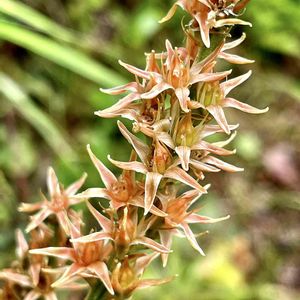 市内外れに広がる林🌳🌳🌳… 初めての出会いですヾ(๑╹◡╹)ノ"💖 『ノギラン』(芒蘭) キンコウカ科、 別名・キツネノオ(狐の尾)🦊 花の基部につく苞をイネ科のノギ(芒)に、葉を蘭に例えての花名。 ⭐️「芒」ノギとはライ麦や小麦などの種の先が尖った部分