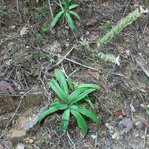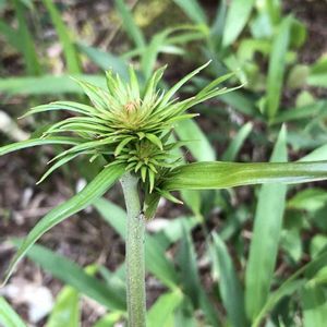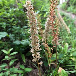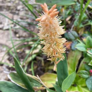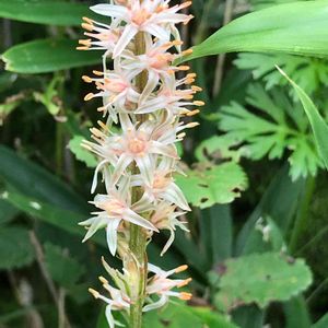 ノギラン 葉っぱが多分、そうだと思うのですが… 花が開いているのかいないのか? よくわからない状態です🧐