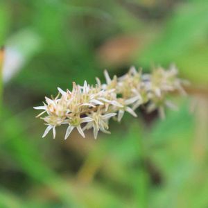 芒蘭(ノギラン) キンコウカ科ノギラン属の多年草。山地の草原の斜面などに生える。根生葉は10枚くらいでロゼット状、先は尖り黄緑色をしている。花期は6~8月。花茎は高さ20~50㎝。穂状に淡黄褐色で緑色を帯びた小さな花を多数つける。花の後も落ちない。子房は上位で卵形。 ノギランには芒(のぎ💬イネ科の種子にみられる細く尖った糸状の付属物、針のような毛)はない。しかし、花のそばに小さな線形の苞(ほう💬花に最も近い葉。花や花序の基部にある葉)があり、この苞を芒に見立てた。さらに、地際に放射状に並んでいる根生葉をランの葉と見立ててこの名がある。他にも、花弁の先や飛び出している雄しべが芒のように見え、全体にランのような雰囲気があることからついた名前とする説もある。 出典『山に咲く花』『夏の野草』『野草の名前』