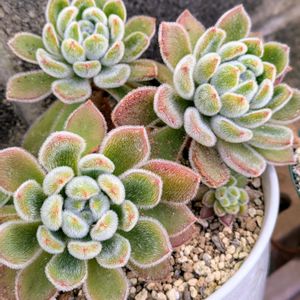みなさまの投稿を見ていたら、いてもたってもいられず園芸店へ(笑) 値下げされててとってもお安くなっていたのでたくさん買いたい気持ちをぐっとこらえてこの子達を選びました。 おそろいのプラ鉢に植え替えてかわいい3姉妹になりました♡