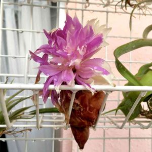 八重咲きコルチカムです。室内だと暖かくて成長しなかったのでチランジアと同じ場所で育てています。