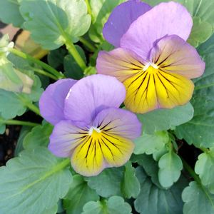 こんにちは😊 ① ビオラ 天使の誘惑とパンプキン ぎゅっと合わせて植え付けたもの。くっつけて植えたらしっかり育つとYouTubeで見かけたもので… 良さそうな事は真似してみる😆 ② 初ハンギングのビオラたち もともと小さい株だったけど、葉っぱは育ってきた 陽の当たる上向きが開花