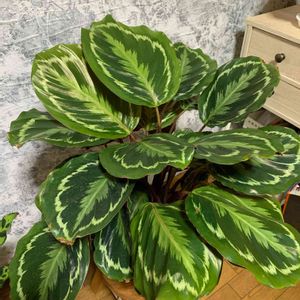 出会ってしまった🤍 なんと立派で綺麗なカラテア🪴 近くのホームセンターに入荷したてを 選びたい放題でお持ち帰り お値段もビックリするほど安くて🤭 新芽3本🌱 うちの環境に合うと良いな