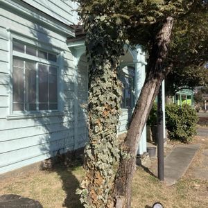🌳防寒対策をした庭木🌳 大正ロマン溢れる病院跡 初詣の帰り道 ヘデラの様な植物を 幹にまとわりつかせた木が 目に止まりました👀 写真を撮っていると 建物の向こう側の門が スルスルと自動で開き ベントレーが出てきました🚙