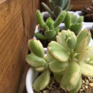 熊童子白斑がキツキツだったので植え替えてあげました♡ そーっと植え替えたのに5枚もおててが取れちゃって悲しい😭