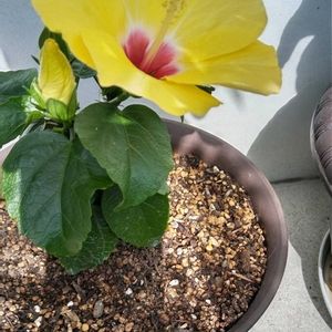 今日のハイビスカスたちの様子です☺️「レモンフラミンゴ」「オレンジフラミンゴ」「アドニス」「アドニスイエロー」は、それぞれ昨日の花が終わり、新たな花を咲かせました。「アフロディーテ」は、まもなく開花です🥰🥰
