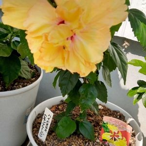花びらが二重になったハイビスカス ハイビスカスを育てるのはずいぶん久しぶり🎶