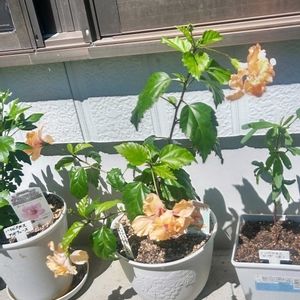 今日は「ハイビスカス オレンジフラミンゴ」の花が4つも咲きました🥰