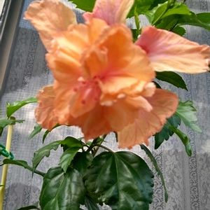 オレンジフラミンゴ🧡🦩🧡🌺ハイビスカス 樹高約130cm 次々と舞う(開花) 鉢の高さをプラスすると…… もう出窓へは上げられませんね 2025.11-68