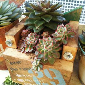 昨日の夜・・多肉ハウス内で寄せてみました・・ 皆さんご存知の あいさんの木箱でぇ~~~す💨 縦型の木箱と左側の木のおうちは、☆eri☆からのプレゼント~~~💦 中央の横型木箱は、あいさんのプレ企画でいただいた物~~~ 遠くて行けない、宮城のあいさんの木箱が二つになりました⤴⤴ あいさん、☆eri☆さん・・ありがとうございます~~~💦 連日のプレゼント鉢、缶、木箱となっております🙇