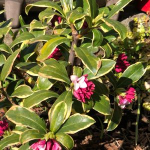 斑入り沈丁花のつぼみがやっと開いてきました╰(*´︶`*)╯♡2色でキレイなうちにパチリ。