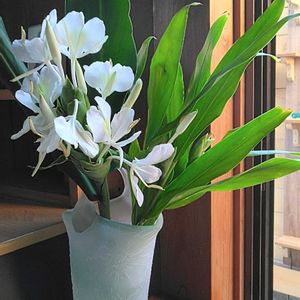 最後のジンジャーリリーが 陽を浴びて光っていました✨ うつしゑのうすきあばたや漱石忌 草城