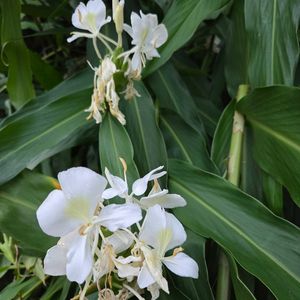 ミゾソバが今年も咲いてきました。去年咲いた時に特徴的な葉っぱの形を覚えて、今年もしばらく前から出てきているのに気付いていたので、楽しみに待ってました🎶 ちょうど今日のお花だったのでナイスタイミングでした。皆さんの投稿を見ていたらツートンの子達が多いみたいですが、うちのは全部同じミルキーピンク?薄ピンクのお花みたいです。特に植えてはいないのですが、シンボルツリーのサルスベリの北側の日陰にわいてきて、ワサワサと咲いてくれます。タデ科の花は大好きなのでとっても気に入っています。 八重咲きのベゴニアが涼しくなって夏よりも勢いを増してます。株分けしたり挿し芽したりでかなり増えました。写真に写っているのは今年の夏に挿し芽で増えたまだ小さい鉢で、さらに大きいサイズのがいくつかあって、庭の色んなところにちょこちょこ置いてます。可愛いし手間もかからなくてありがたいです。 ジンジャーも夏より花が増えて、今年はいっぱい咲いてます。夏顔だけど良き。夕方にはいい香りもします。