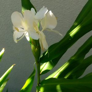 身近に育っていなくて、一度香りを嗅いでみたいと思っていたジンジャーリリーを早春にお迎えしていました。 なかなか芽が出なくて心配しましたが、育ち始めたら元気、元気😄 やっと咲いた花は一輪目からいい香り〜💕 香りの感想はクチナシの香りによく似ているなぁと思いました。 子どもの頃を思い出す香り。すごい好き😊 大きな生姜のような球根🫚 広がっても大丈夫なように広いスペースに植えました。 どんどん増えたら嬉しいなぁ。