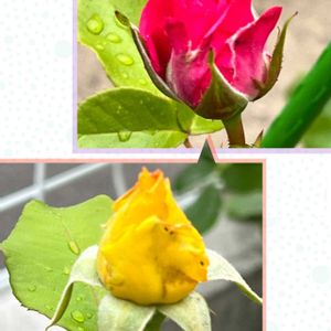 🏷️家の庭の花たち バラ🌹 🏷️蕾組の子 1.🟡はエンブレム 🩷はスーパーのスプレーバラを挿し木したもの 2.リオサンバらしきバラ