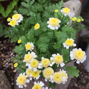 マトリカリアまだ元気に咲いています。お行儀が悪くて、頭を下げて寝そべっている‼️👀😳🤭😊