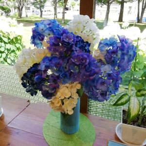 帯広 トテッポ工房にて 《美味しいお菓子やさん》 アナベルとアジサイと緑の風景の素敵なコントラストに、お菓子そっちのけで、パチリ📱✳️