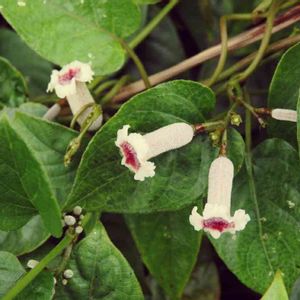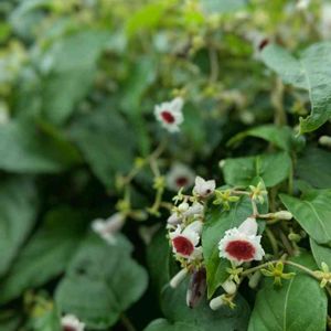 つる性で1センチ位の小さな花です 近くで撮ったらこんなに花弁ふさふさでした🌸 葉っぱを擦ったら臭うよと教えてもらったけど やっぱりそんなにクサイとは感じませんでした(^-^; 別名 ヤイトバナ、サオトメバナだそうです🌸