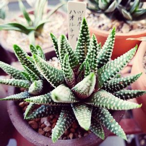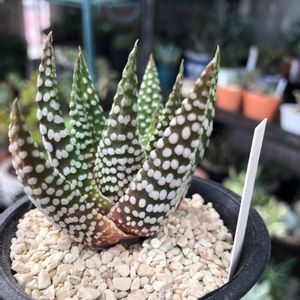 職場の近くに変わった植物屋さんがあるというので、帰りに行ってみた。 お店の看板もわかりにくいし、うっかり通り過ぎちゃいそうな小さい入り口😅 ワクワク、どきどきしながら潜入!! ディープな世界だったデス😆 ほぼほぼ 食虫植物🐜🐛🌱🌿 不思議過ぎて、根掘り葉掘り質問。 とても親切にいろいろ教えて下さいました。 私には手に負えないので手ぶらで帰宅しましたが、面白かったデス💖💕 で、今日のpicはあんまり投稿されてないから 珍しいのかな? ハオルチア シジマ(H. zenigata × H. maxima) 白い立体的なプチプチが面白い。 成長はゆっくりっぽい。 根はしっかりしてるケド 全然大きくなってる気がしない😆 そういえば、花も咲かないナ もうちょっと変化が見たい。゚(っ゚´ω` ゚c)゚。