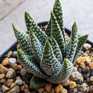 2点目 ハオルチア『シジマ』 大和言葉 夜のしじま 静寂という意味の シジマ 私は、どうやら この類いの葉に白い点々やら、しま縞模様のやつにひかれるみたい💕😊