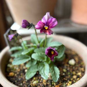 ビオラ パリ・アン・パレット お友達が選んでくれました🌱 我が家にやって来て1ヶ月余 やっと本日植え付け完了 が、植え込んでから気付く この子って2株入ってる? 後方にチラリと見えてる花は雰囲気が違うんです どんな風に育つのかこれから楽しみ😊
