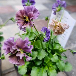 可愛いの権化 淡く優しい色合いに、繊細なフリルの小輪の花 石川園芸さんのビオラ マイガール ピンク系で、お連れしました レディの姉妹(レディの選抜)だから、このあとの色変わり変化も楽しみ🎶